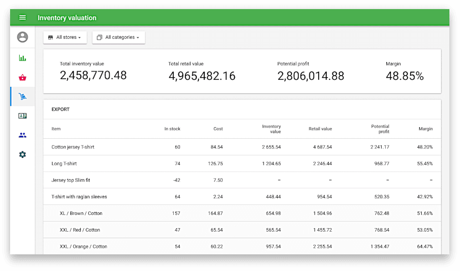 - Distribute items among your stores if you have multiple stores. Perform partial or full inventory counting either manually or with a barcode scanner.
