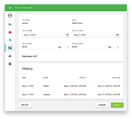 - Check employee work time with the clock-in / clock-out feature